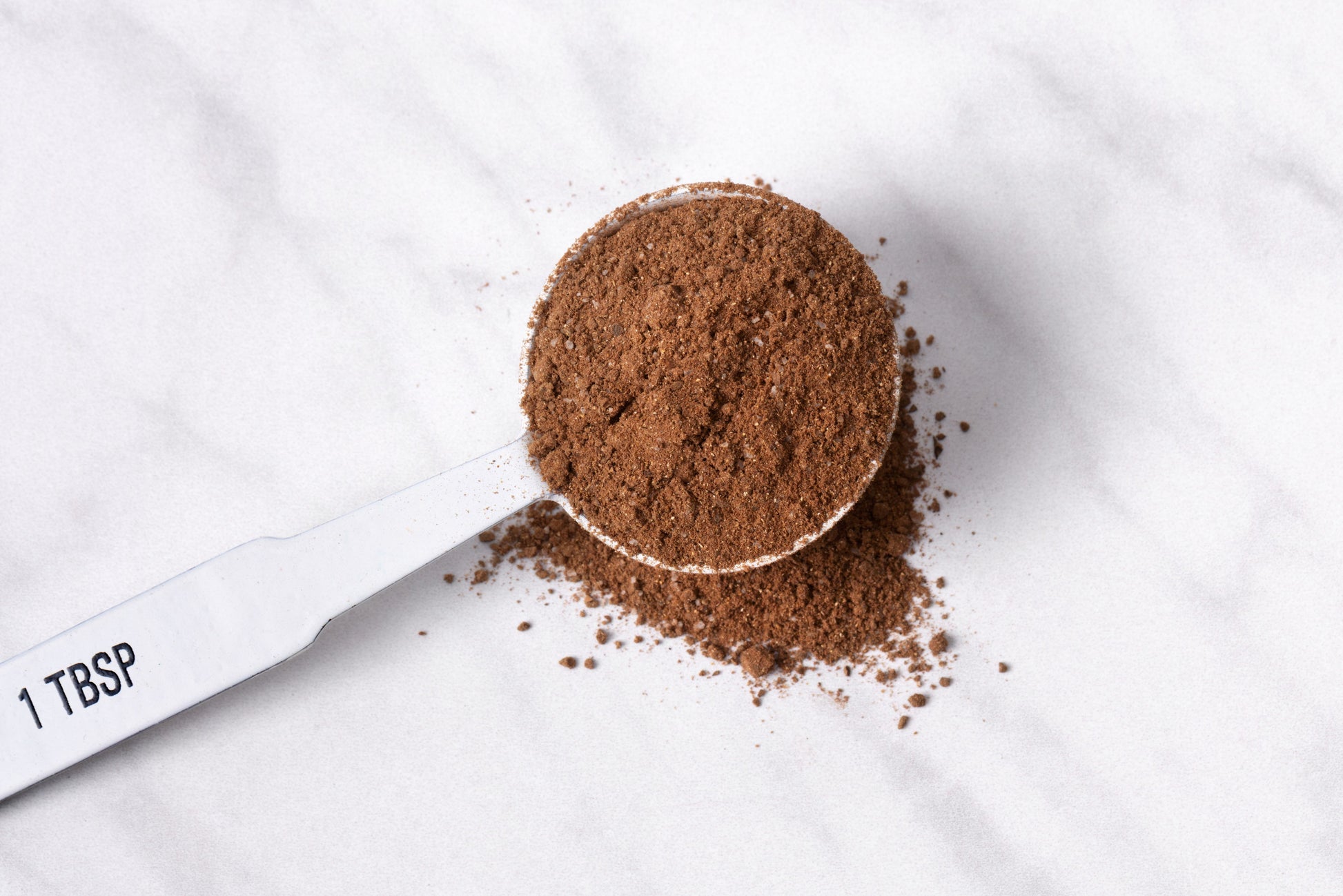 Ground coffee, cocoa powder, ground cinnamon, porcini mushroom powder, Kosher Salt.