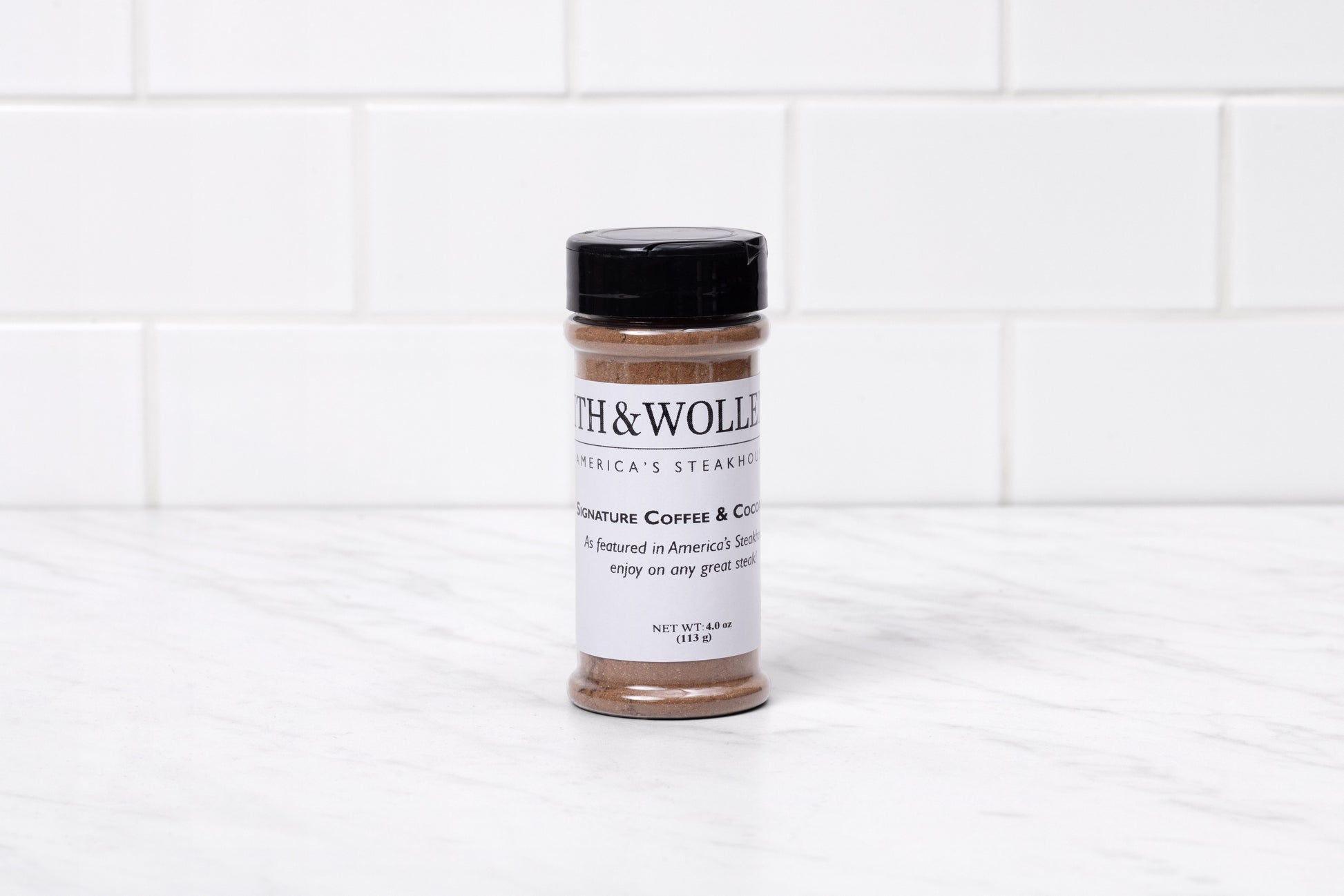 Our Coffee and Cocoa Rub is a delightful seasoning blend used to enhance the flavor of steaks. It's the perfect balance of sweet and savory combining high quality coffee and cocoa with the spices that accentuate their natural flavors. Comes in an 8 oz shaker.